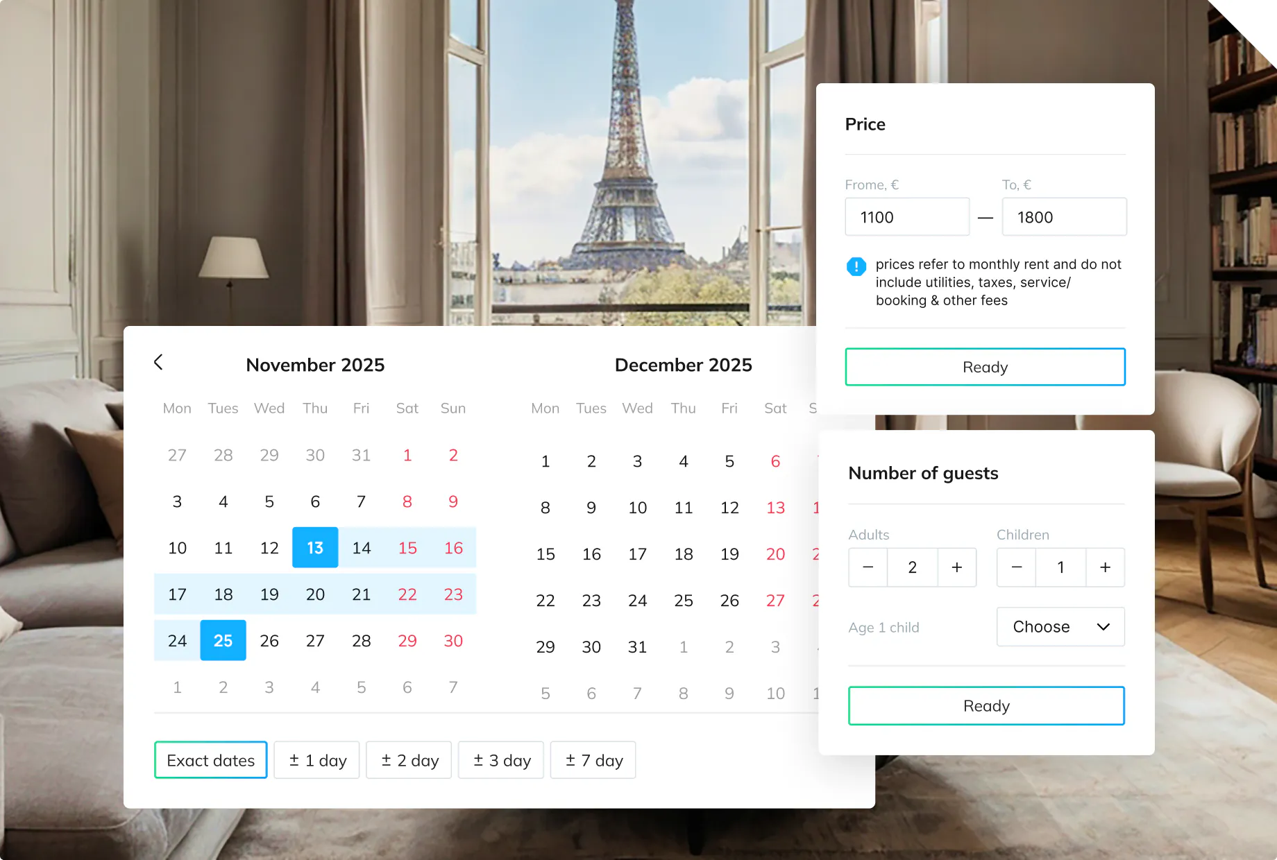 5–8 months (accommodation) – 75% (from monthly rent);